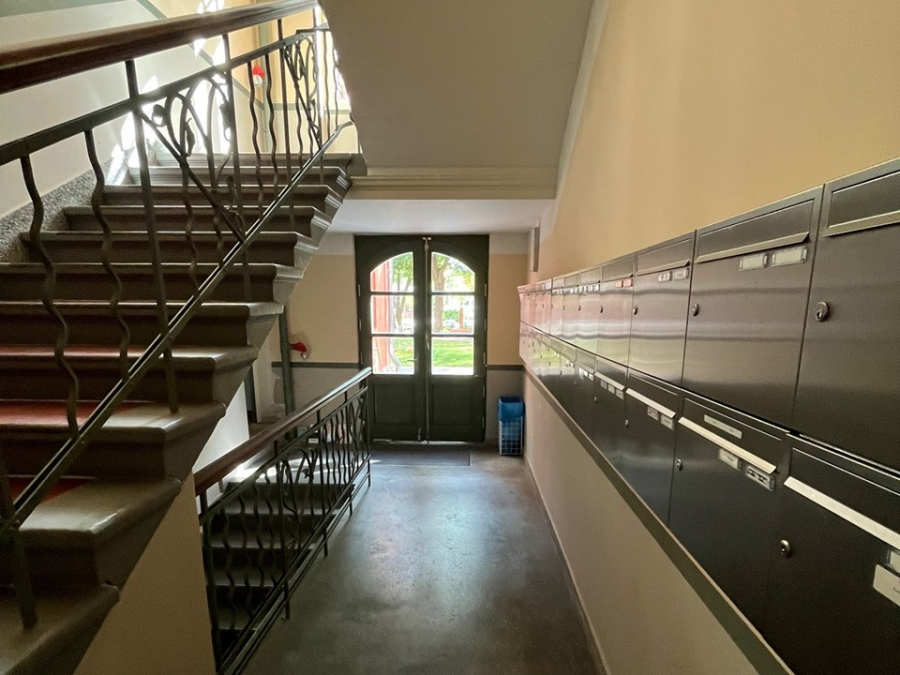 Im zentralen Hauptgebäude befindet sich diese großartige repräsentative Mietfläche mit herrlich hohen Decken und großzügigen, nach Süden ausgerichteten Fenstern. Auch nach Norden lassen Fenster Licht herein, so dass trotz der Souterrainlage viel Tageslicht Ihr Büro erhellt.