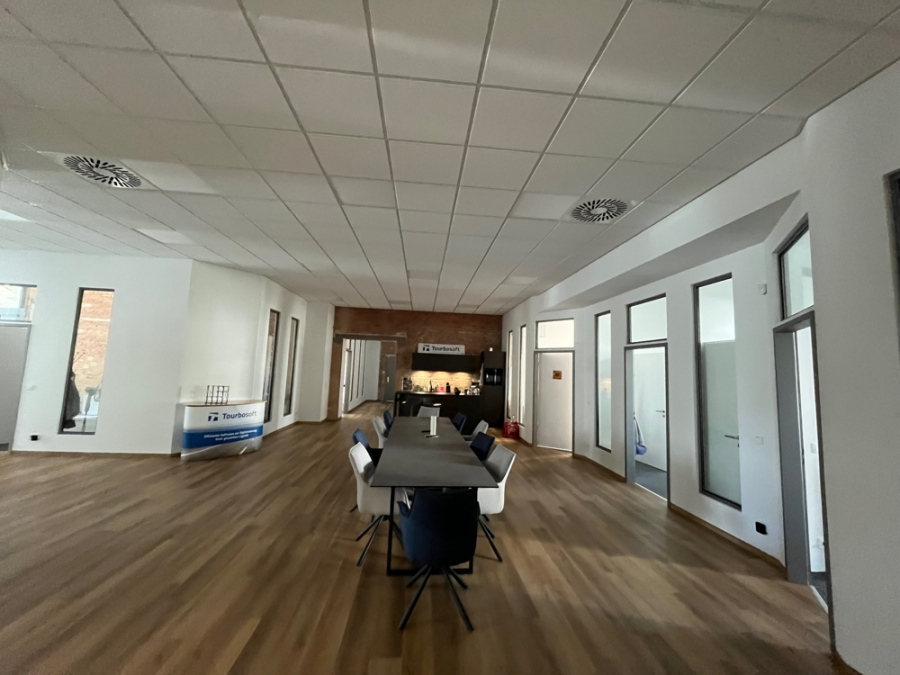 Die große offene Fläche mit einer Deckenhöhe von ca. 4,40 m bieten alle Freiheitsgrade zur Gestaltung Ihrer Büroräume. Auch ein Mezzaningeschoss könnte eingezogen werden.