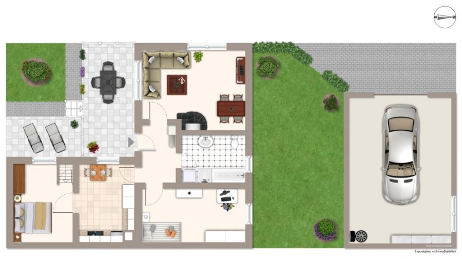 Dazu kommt noch reichlich Nutzfläche in der großzügigen Garage, im Keller und auf dem Spitzboden.